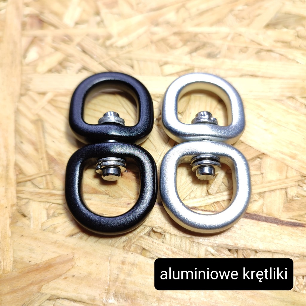- aluminiowe krętliki – w kolorze czarnym lub srebrnym, o średnicy 1.5cm. Obciążenie niszczące wynosi 400kg. Wykorzystywane np. przy produkcji dwójników