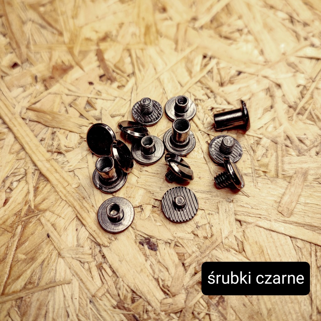 - śrubki czarne lub srebrne, o wielkości dostosowanej do grubości warstw materiału. Co najmniej jedna strona posiada nacięcie w kształcie krzyża lub podłużne